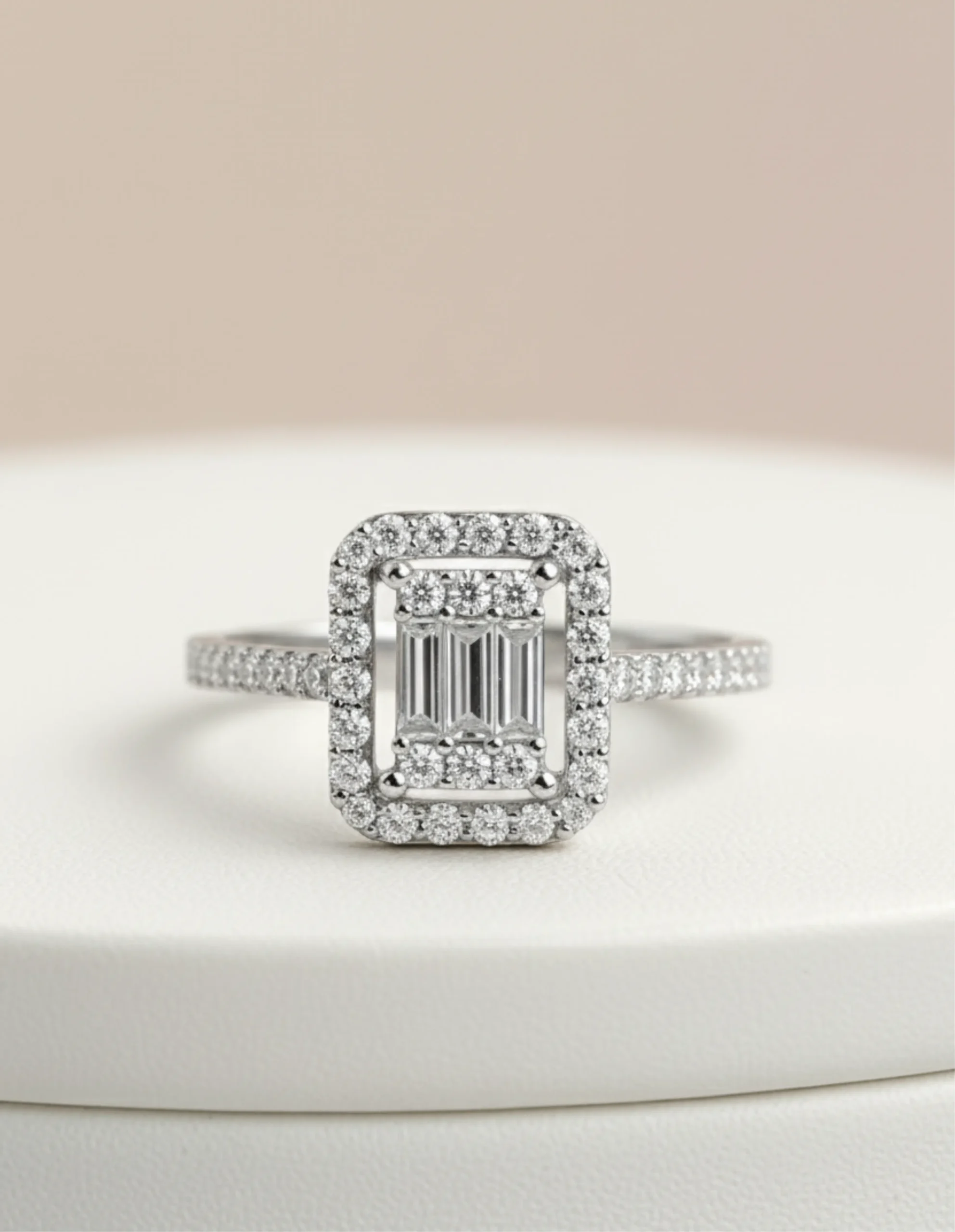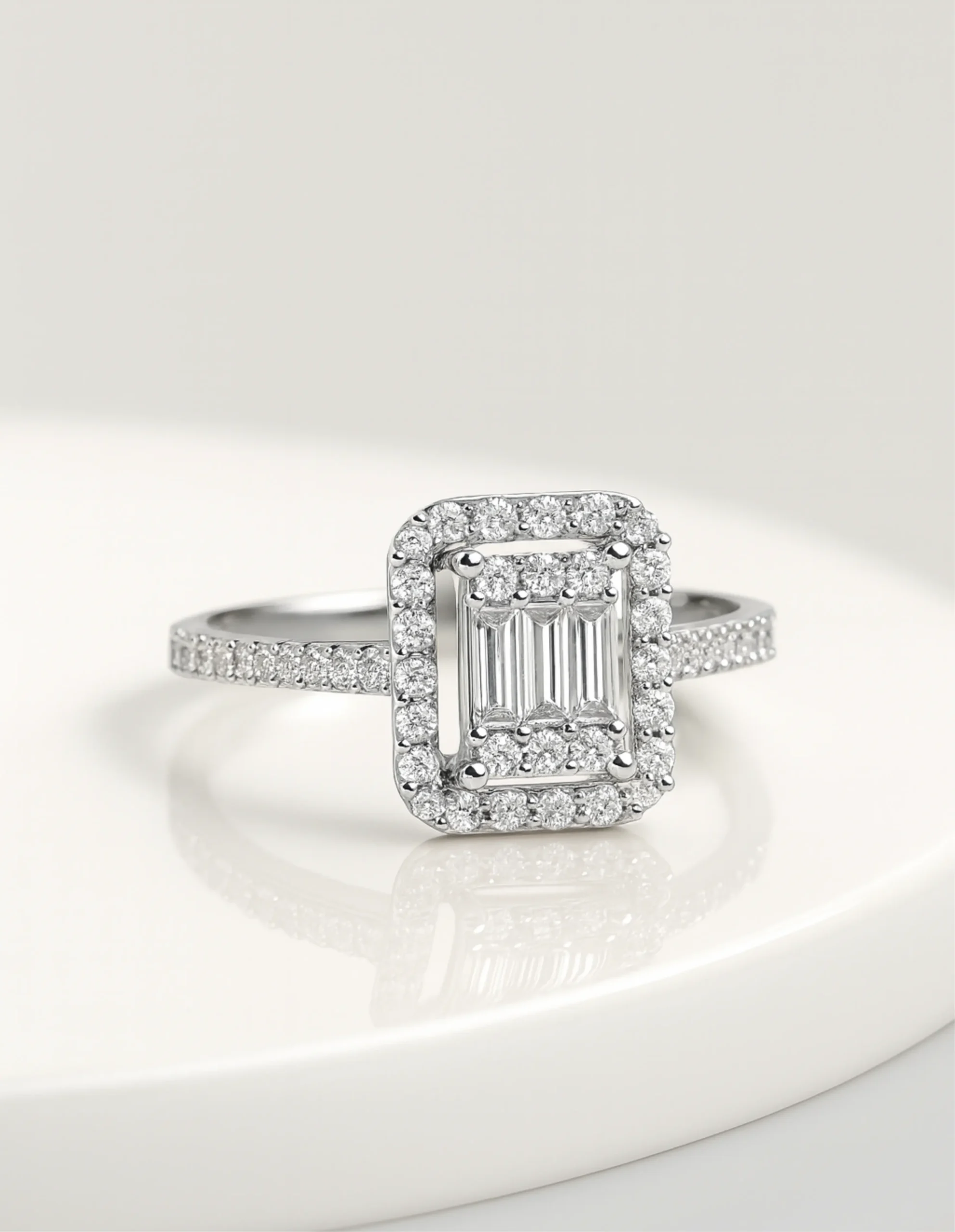 | 👑 Tasarım | Dikdörtgen Halo Çerçeve ve Pavé Bant |