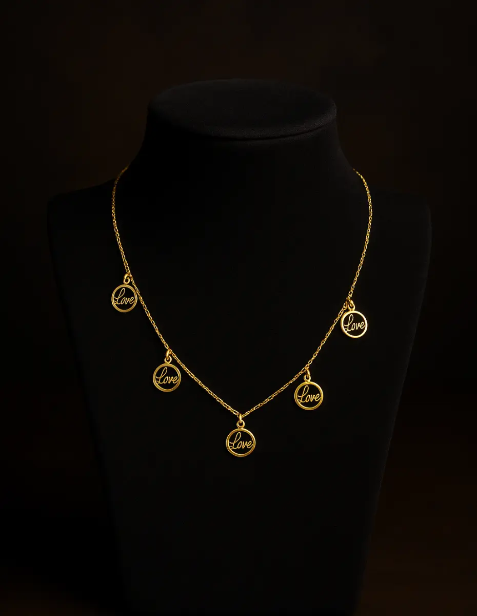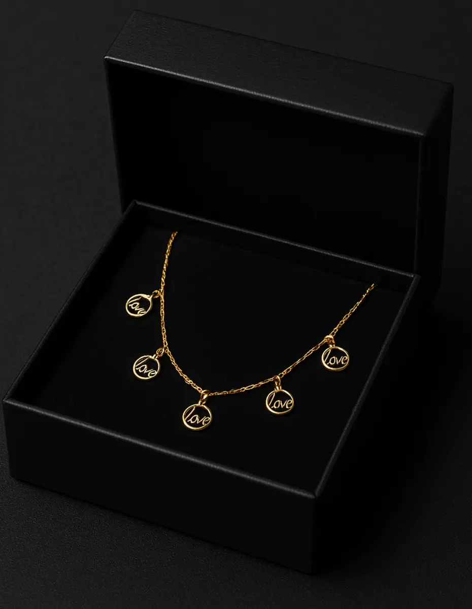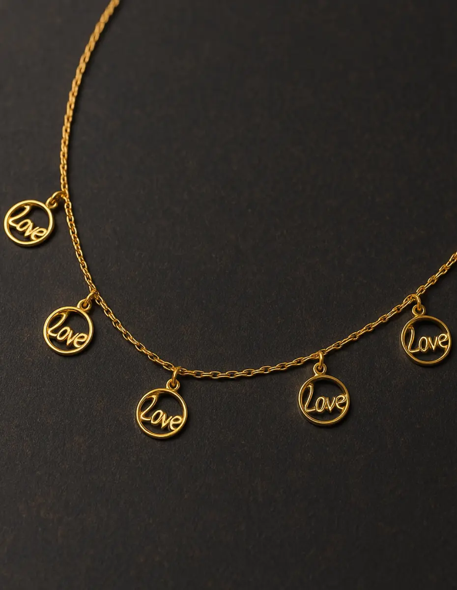 Silver 925 Love Yazılı 5 Halkalı Kadın Kolye (Gold Kaplama), her biri “Love” kelimesiyle işlenmiş beş halkasıyla sevginin gücünü ve sadeliğini temsil ediyor.